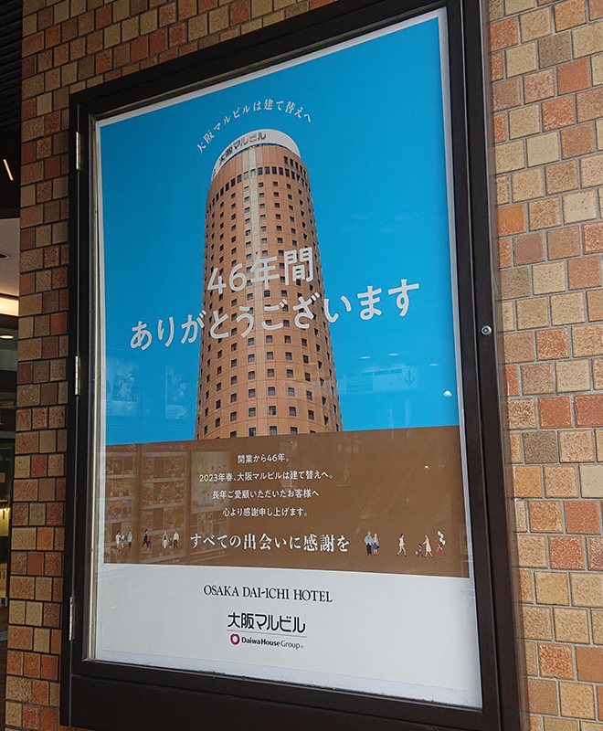 開業から47年。大阪マルビルは建て替えへ。長年ご愛顧いただいたお客様へ心より感謝申し上げます。